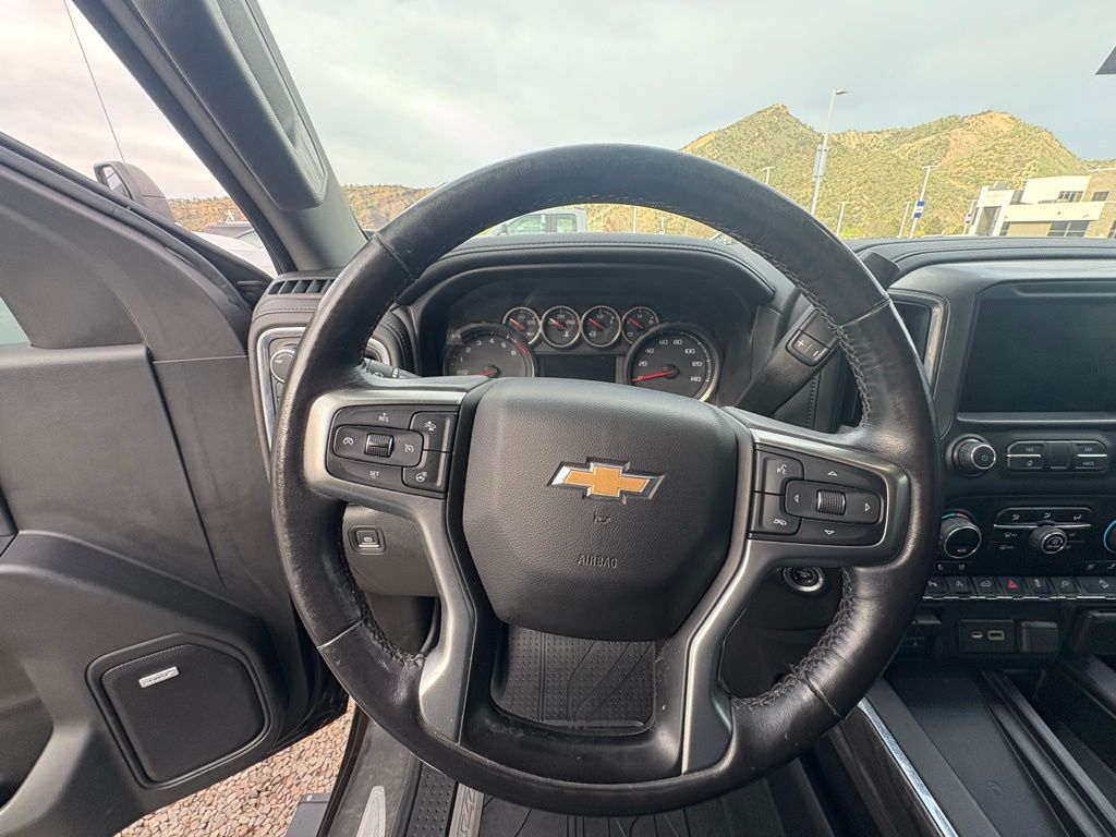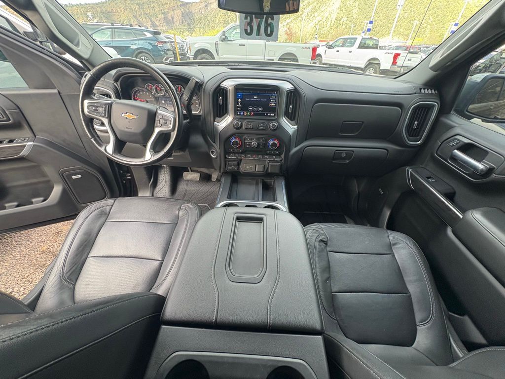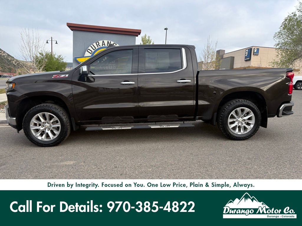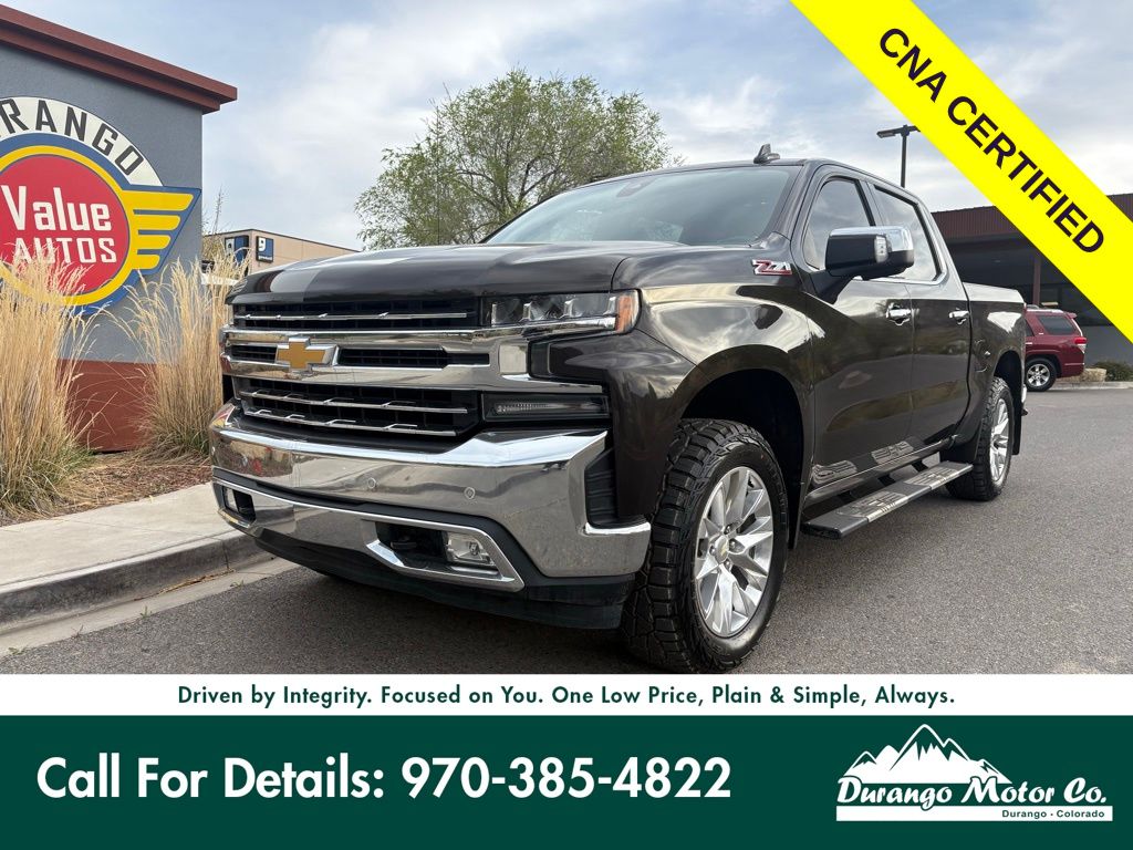 Certified! The 2019 Chevrolet Silverado 1500 LTZ 4WD Crew Cab is a powerful and refined full-size pickup that delivers an impressive balance of performance, capability, and premium comfort. Powered by a 5.3L EcoTec3 V8 engine paired with an 8-speed automatic transmission, it offers strong horsepower and torque while maintaining efficiency through advanced dynamic fuel management. Equipped with four-wheel drive and a Z71 off-road package, its built to confidently handle tough terrain and demanding conditions. The exterior, finished in Havana Brown Metallic, is complemented by chrome accents and bold styling, giving it a commanding presence on the road. Inside, the Jet Black interior provides a premium and comfortable cabin featuring leather-appointed seating, heated and ventilated front seats, heated second-row seats, a power sunroof, and a Bose premium sound system. Advanced technology including navigation, wireless charging, and a full suite of driver-assist features like forward collision alert, lane keep assist, and blind spot monitoring ensures both convenience and safety, making this Silverado a perfect blend of strength, luxury, and everyday usability.