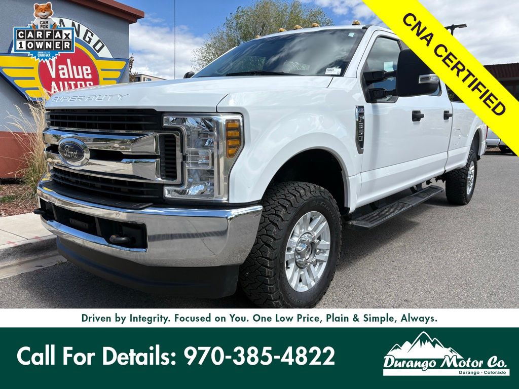 Certified! LONG BED!!! The 2019 Ford F-350 Super Duty XL Crew Cab 4x4 is a heavy-duty truck built for serious capability, delivering powerful performance and rugged durability for demanding work and towing needs. Powered by a 6.2L V8 engine paired with a 6-speed automatic transmission, it provides strong and reliable power for hauling heavy loads and tackling tough job site conditions. Equipped with a 4x4 system, manual locking hubs, and a heavy-duty suspension setup, it offers excellent traction and control across a variety of terrains. Finished in Oxford White with a medium earth gray vinyl interior, it features a clean and functional design with a spacious Crew Cab layout for added comfort and practicality. Inside, the cabin is built with durability in mind, offering easy-to-clean materials, air conditioning, cruise control, and a rearview camera for added convenience. With features like trailer sway control, skid plates, and advanced stability systems, this F-350 XL delivers a strong combination of capability, reliability, and everyday usability.
