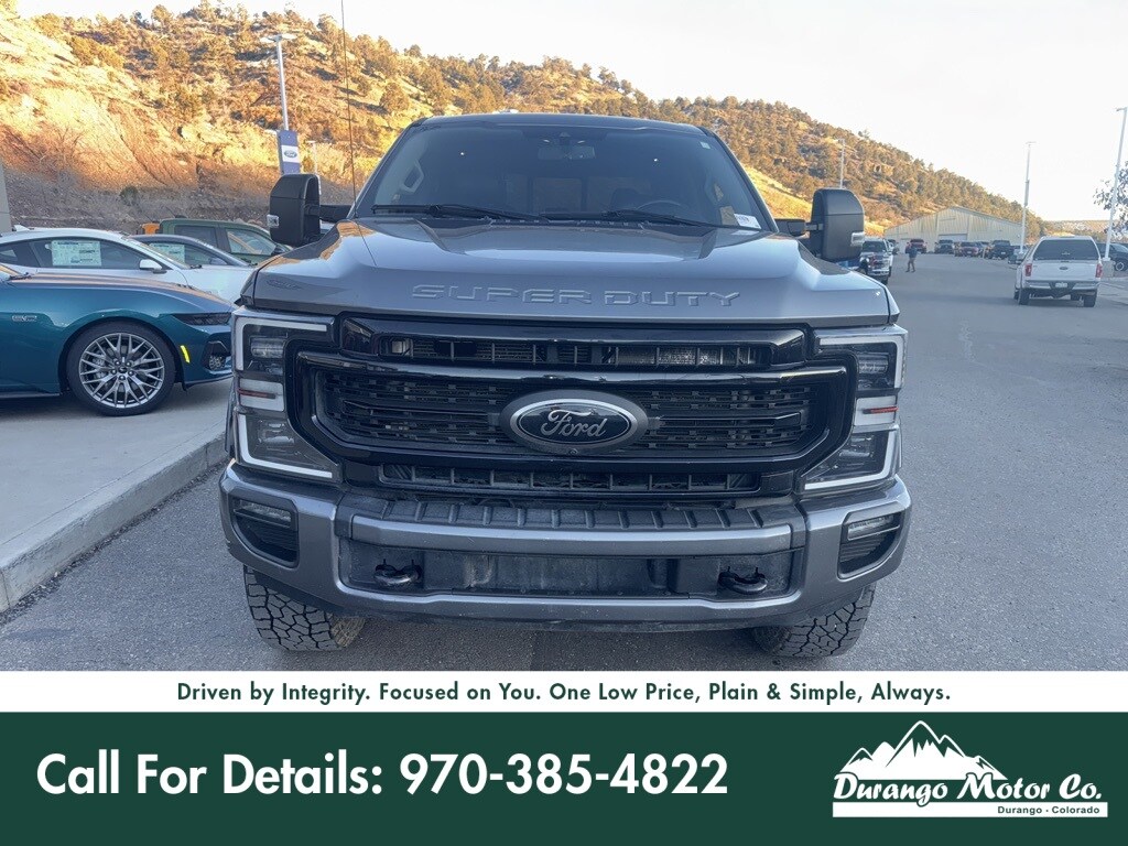 4WD, 10-Speed Automatic Power Stroke 6.7L V8 DI 32V OHV Turbodiesel Clean Carfax, 4WD, 110V/400W Outlet, 6" Ebony Black Angular Running Boards, Adjustable pedals, Ambient Lighting - Fixed Color, Auto High-beam Headlights, Automatic temperature control, Black Out Surrounds LED Only Headlamps, Body-Color Front & Rear Bumpers, Body-Color Wheellip Moldings, Brake assist, Easy Entry®/Exit Memory Driver's Seat Feature, Ebony Black Painted Front Grille Bars, Ebony Black Painted Mirror Caps, Electronic Stability Control, Engine Block Heater, Exterior Parking Camera Rear, Front dual zone A/C, Front fog lights, Heated door mirrors, High Capacity Trailer Tow Package, Intelligent Access w/Push-Button Start, Lane-Keeping Alert, Lariat Black Appearance Package, Lariat Ultimate Package, Leather steering wheel, LED Box Lighting, Low tire pressure warning, Memory Power-Adjustable Pedals, Order Code 608A, Outside temperature display, Power door mirrors, Power Heated/Ventilated Driver Seat w/Memory, Power Heated/Ventilated Passenger Seat, Power Telescoping/Tilt Steering Wheel/Column, PowerScope Trailer Tow Mirrors w/Memory, Pro Trailer Backup Assist - High Capacity, Radio: B&O System by Bang & Olufsen, Rear Parking Sensors, Rear Wheel Well Liners (Pre-Installed), Remote Start System, Remote Tailgate Release, SiriusXM Radio, SYNC 3 Communications & Entertainment System, Tailgate Step & Handle, Textured Matte Finish Off-Road Running Boards, Tough Bed Spray-In Bedliner, Tremor Off-Road Decal, Tremor Off-Road Package, Twin Panel Power Moonroof, Ultimate Trailer Tow Camera System, Voice-Activated Navigation, Wheels: 18" Low-Gloss Black Painted Aluminum, Wheels: 20" High-Gloss Black Premium Painted Alum.