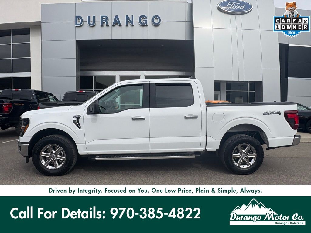 Certified! Introducing the 2025 Ford F-150 XLT 4x4 SuperCrew, available at Durango Motor Company. Powered by the proven 3.5L V6 EcoBoost engine and paired with a 10-speed automatic transmission, this full-size pickup delivers strong performance, impressive capability, and everyday drivability. Finished in Oxford White with a Dark Slate cloth interior, this F-150 offers a clean, modern look with a spacious SuperCrew cabin. Equipped with the XLT Equipment Group, selectable drive modes, and advanced trailering technology, its built to handle workdays and weekends alike. Inside, youll find modern tech such as SYNC 4 with a 12-inch display, dual-zone automatic climate control, and a full suite of driver-assist safety features, making every drive comfortable and confident.