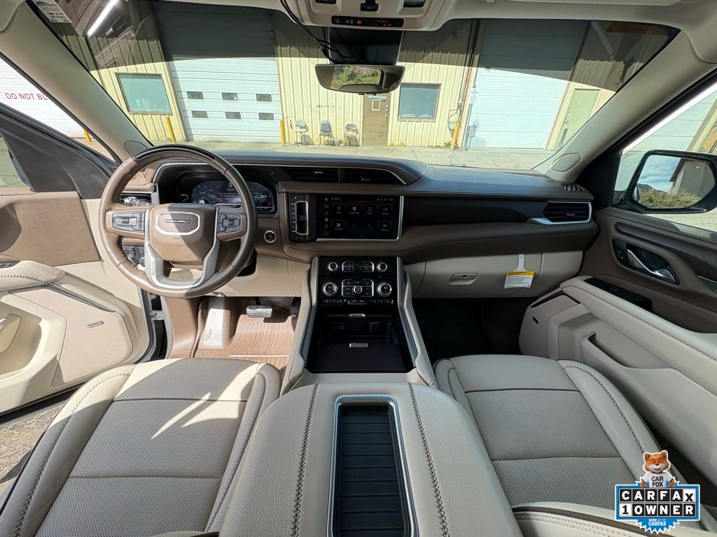 The 2023 GMC Yukon Denali 4WD is a full-size luxury SUV that delivers powerful performance, premium comfort, and advanced technology in a bold and commanding package. Powered by a 6.2L EcoTec3 V8 engine paired with a 10-speed automatic transmission, it provides impressive horsepower and smooth, responsive performance for both daily driving and towing. Equipped with advanced 4WD capability, Magnetic Ride Control, and an available air ride adaptive suspension, it offers a refined and confident ride across a variety of road conditions. The Denali trim stands out with its upscale design and attention to detail, featuring a striking White Frost Tricoat exterior and a premium teak and light shale interior. Inside, the cabin is loaded with luxury amenities including heated and ventilated leather seats, a heated steering wheel, tri-zone climate control, and a power-folding third row. Advanced technology features such as a large touchscreen with Google built-in, wireless Apple CarPlay and Android Auto, a premium Bose sound system, head-up display, and available Super Cruise hands-free driving elevate the driving experience, making this Yukon a perfect blend of power, luxury, and versatility.