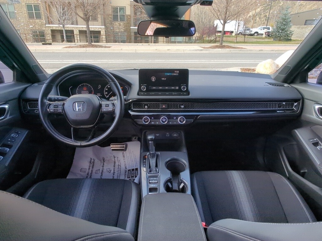 Certified! 2022 Honda Civic Sport FWD CVT 2.0L I4 DOHC 16V i-VTEC Clean Carfax, Black w/Leather Seat Trim, 4-Wheel Disc Brakes, Apple CarPlay/Android Auto, Auto High-beam Headlights, Automatic temperature control, Emergency communication system: HondaLink, Exterior Parking Camera Rear, Forward collision: Collision Mitigation Braking System (CMBS) + FCW mitigation, Four wheel independent suspension, Front Bucket Seats, Leather steering wheel, Low tire pressure warning, Outside temperature display, Power door mirrors, Radio: 180-Watt AM/FM Audio System, Security system, Steering wheel mounted audio controls, Telescoping steering wheel, Wheels: 18" Gloss Black Alloy.
