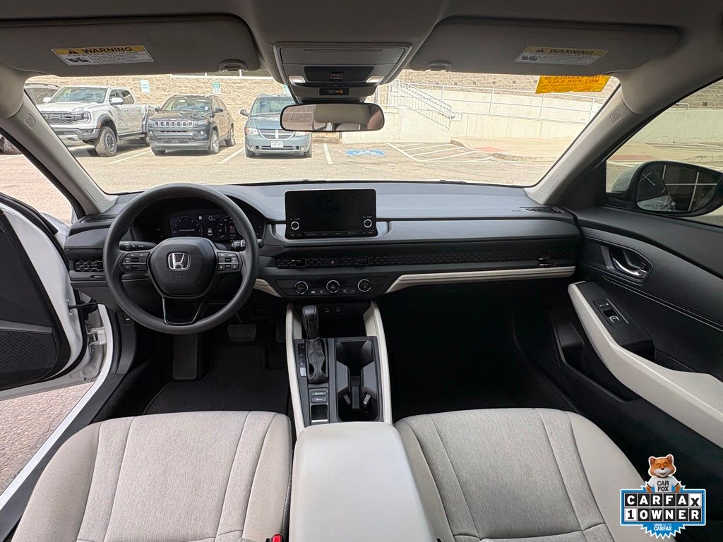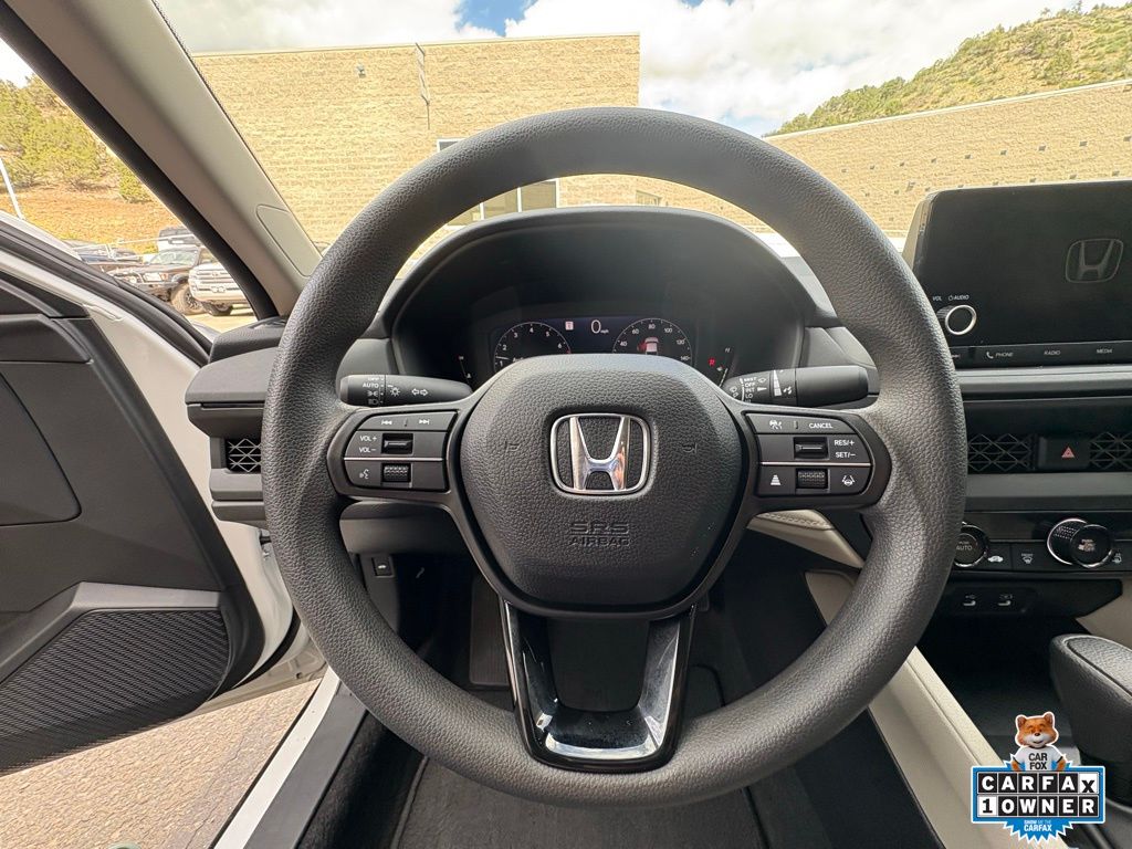 The 2023 Honda Accord LX is a refined and efficient midsize sedan that delivers a strong balance of performance, comfort, and modern technology. Powered by a 1.5L turbocharged 4-cylinder engine paired with a continuously variable transmission, it produces a responsive 192 horsepower while maintaining excellent fuel efficiency for both city and highway driving. With front-wheel drive, it offers smooth handling and a composed ride, making it an ideal choice for daily commuting and long-distance travel alike. The redesigned exterior features a clean and sophisticated look, while the interior provides a spacious and comfortable cabin with quality materials and a modern layout. Inside, it includes a user-friendly infotainment system with Apple CarPlay and Android Auto, a digital instrument display, and advanced driver-assist features such as adaptive cruise control, lane keeping assist, and collision mitigation braking, giving it a well-rounded mix of convenience and safety.