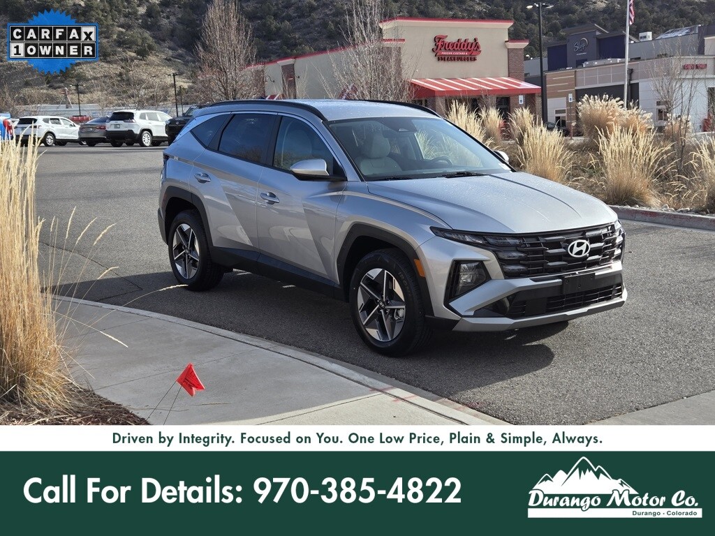 2025 Hyundai Tucson SEL AWD 8-Speed Automatic with SHIFTRONIC 2.5L I4 DGI DOHC 16V LEV3-SULEV30 187hp Clean Carfax, One Owner, AWD, 18" Alloy Wheels, 4-Wheel Disc Brakes, ABS brakes, AM/FM radio: SiriusXM, Apple CarPlay & Android Auto, Auto High-beam Headlights, Automatic temperature control, Delay-off headlights, Electronic Stability Control, Four wheel independent suspension, Front dual zone A/C, Fully automatic headlights, Heated door mirrors, Heated Front Bucket Seats, Low tire pressure warning, Panic alarm, Power driver seat, Power Liftgate, Power windows, Rear window defroster, Rear window wiper, Remote keyless entry, Security system, Speed control, Split folding rear seat, Stain & Odor Resistant Cloth Seat Trim, Steering wheel mounted audio controls, Telescoping steering wheel, Tilt steering wheel, Traction control.