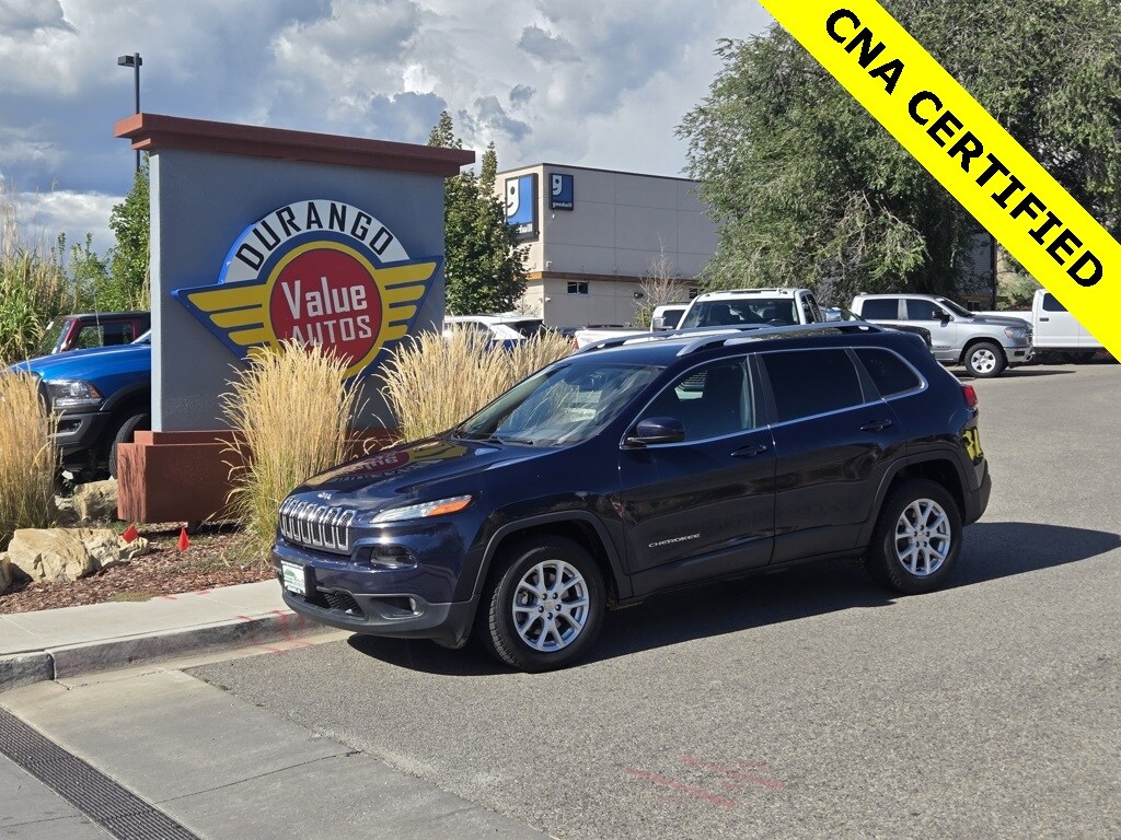 Certified! 2016 Jeep Cherokee Latitude 4WD 9-Speed 948TE Automatic 3.2L V6 Clean Carfax, 17" x 7" Aluminum Wheels, 4-Wheel Disc Brakes, 6 Speakers, 7 & 4 Pin Wiring Harness, 8.4" Touchscreen Display, ABS brakes, Active Grille Shutters, All-Season Floor Mats, Auxiliary Transmission Oil Cooler, Brake assist, Class III Receiver Hitch, Cold Weather Group, Compass, Delay-off headlights, Electronic Stability Control, Engine Block Heater, Engine Oil Cooler, Exterior Mirrors w/Heating Element, Four wheel independent suspension, Front fog lights, Fully automatic headlights, Heated Front Seats, Heated Steering Wheel, Illuminated entry, Integrated Voice Command w/Bluetooth, Low tire pressure warning, Outside temperature display, Panic alarm, ParkView Rear Back-Up Camera, Power Heated Mirrors, Quick Order Package 26J, Remote keyless entry, Speed control, Speed-sensing steering, Steering wheel mounted audio controls, Telescoping steering wheel, Tilt steering wheel, Traction control, Trailer Tow Group, Trailer Tow Wiring Harness, Windshield Wiper De-Icer.