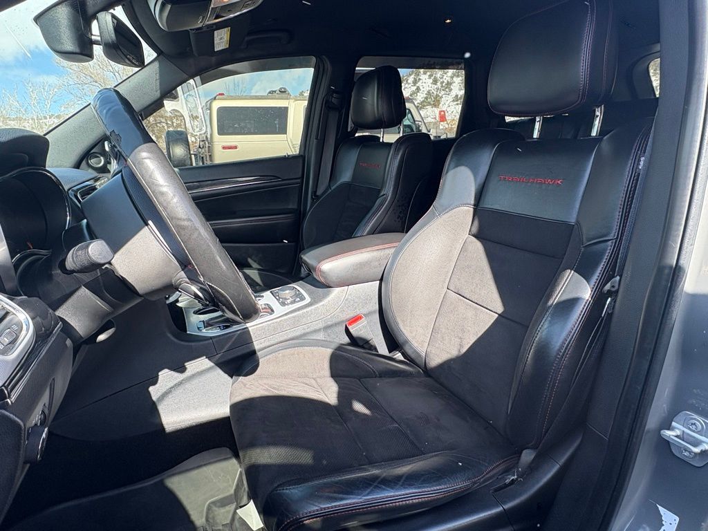 Certified! The 2019 Jeep Grand Cherokee Trailhawk 4x4 delivers legendary off-road capability paired with powerful V8 performance and premium comfort. Under the hood, the 5.7L HEMI V8 provides strong, confident power, paired with an 8-speed automatic transmission and Jeeps advanced Quadra-Drive II 4-wheel-drive system. Finished in Sting-Gray Clear-Coat with a bold black and ruby red leather-trimmed interior, this Trailhawk is equipped with features like Quadra-Lift air suspension, Selec-Terrain drive modes, electronic rear limited-slip differential, skid plates, and Trailer Tow Group IV. Inside, youll enjoy heated and ventilated front seats, heated rear seats, Uconnect navigation with an 8.4-inch touchscreen, Apple CarPlay and Android Auto, making this SUV equally ready for rugged trails, towing, or comfortable daily driving.