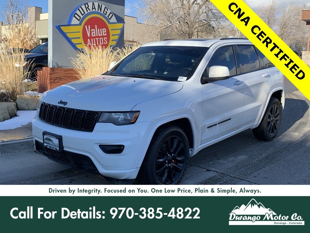 Certified! 2019 Jeep Grand Cherokee Altitude 4WD 8-Speed Automatic 3.6L V6 24V VVT 4WD, 1-Year SiriusXM Radio Service, 4G LTE Wi-Fi Hot Spot, 5-Year SiriusXM Traffic Service, 5-Year SiriusXM Travel Link Service, 8.4" Touchscreen Display, Altitude Grille, Altitude IV Package, Apple CarPlay, Auto-Dimming Rear-View Mirror, Black Suede Seats w/Black Stitching, Body Color Claddings, Body Color Fascia, Body Color Shark Fin Antenna, Dark Day Light Opening Moldings, Dark Headlamp Bezel Finish, Dark Lens Taillamps, Front Accent/Body Color Fascia, Front dual zone A/C, Front fog lights, Gloss Black Rear Fascia Applique, Google Android Auto, GPS Antenna Input, GPS Navigation, HD Radio, Instrument Cluster w/Off-Road Disp. Pages, Integrated Center Stack Radio, Integrated Voice Command w/Bluetooth, Jeep Black Gloss Badging, Low tire pressure warning, Outside temperature display, ParkView Rear Back-Up Camera, Power 4-Way Driver Lumbar Adjust, Power 8-Way Driver/Manual Passenger Seat, Power Liftgate, Power Sunroof, Quick Order Package 2BZ Altitude, Radio: Uconnect 4C Nav w/8.4" Display, Rear Accent/Body Color Fascia, Rear Fascia Black MIC Step Pad, Security & Convenience Group, Security Alarm, Single Exhaust w/Bright Tip, SiriusXM Satellite Radio, SiriusXM Traffic Plus, SiriusXM Travel Link, Steering Wheel Mounted Audio Controls, Universal Garage Door Opener, USB Host Flip, Wheels: 20" x 8.0" Gloss Black Aluminum.