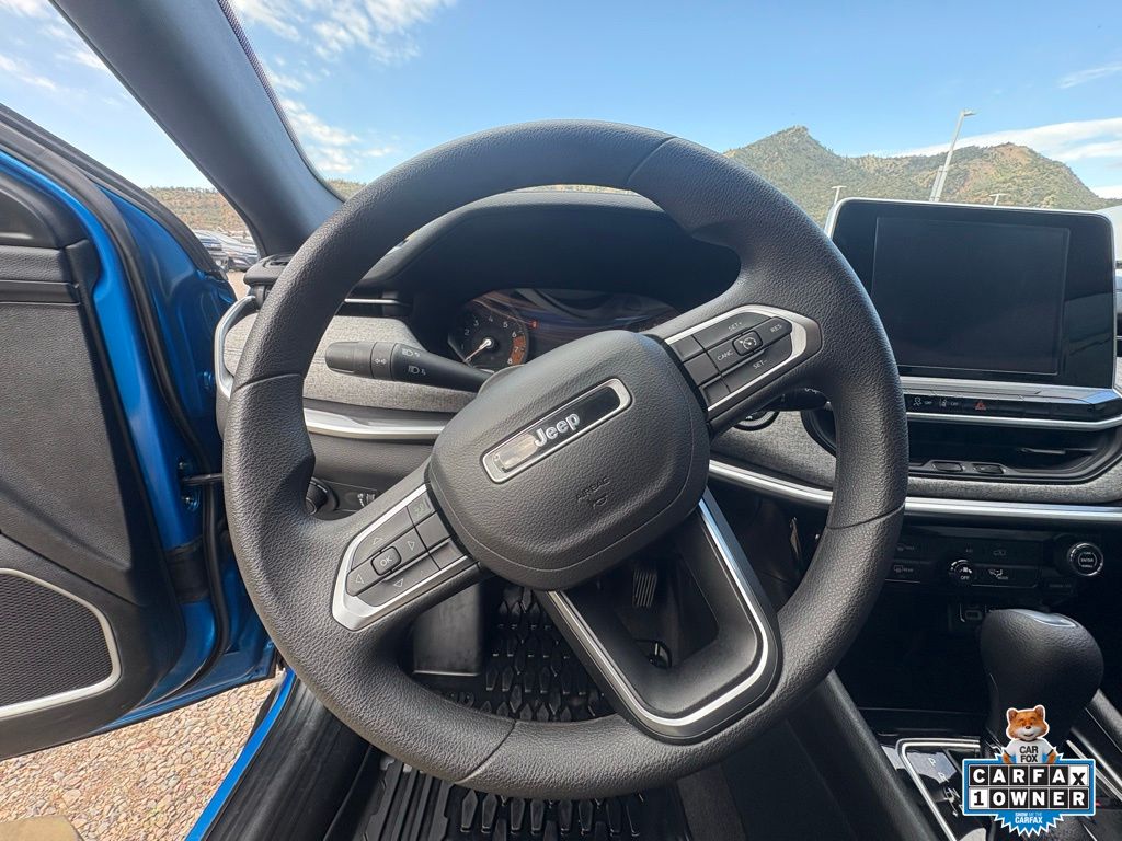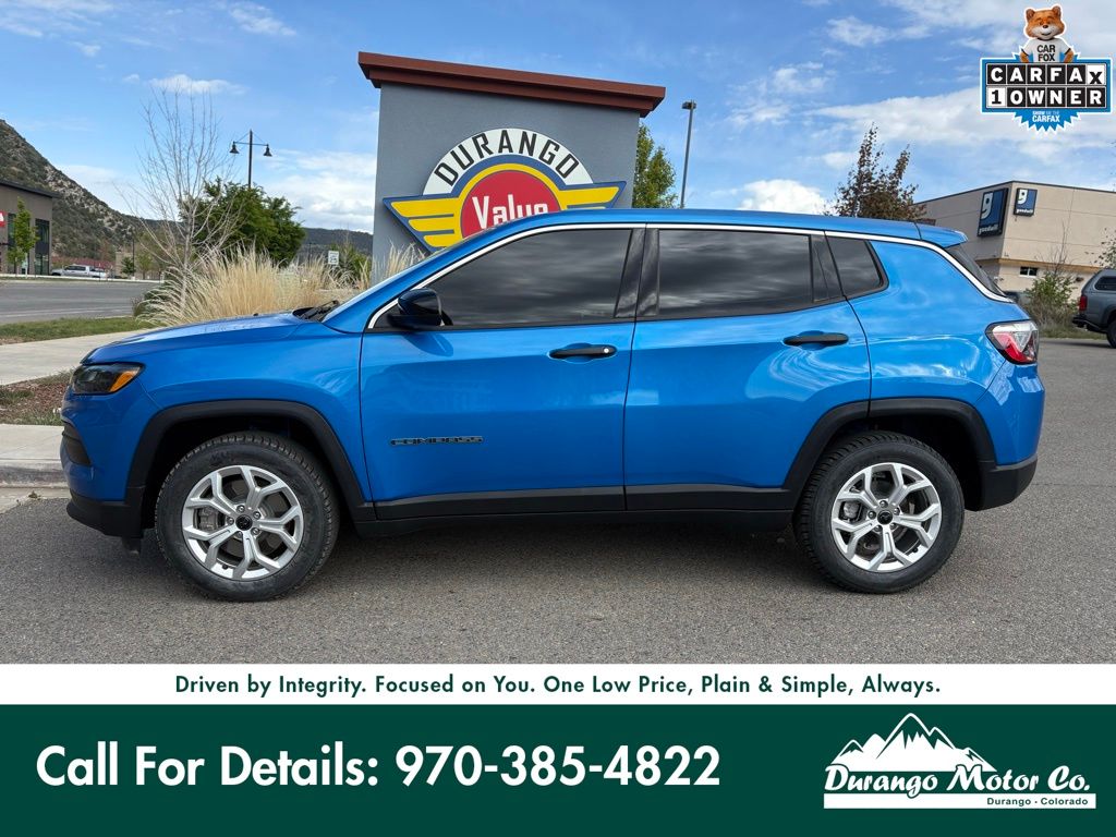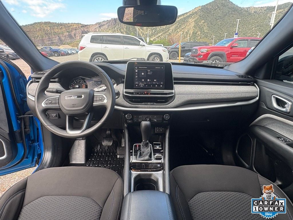 Certified! The 2025 Jeep Compass Sport 4x4 is a compact SUV that delivers a strong balance of performance, technology, and everyday versatility. Powered by a 2.0L turbocharged 4-cylinder engine paired with an 8-speed automatic transmission, it offers responsive acceleration and efficient performance for both city driving and highway travel. Equipped with Jeeps 4x4 system and Selec-Terrain traction management, it provides confident handling and stability across a variety of road and weather conditions. Finished in Hydro Blue Pearl-Coat with a black interior, it features a bold and modern design with classic Jeep styling cues. Inside, the cabin is equipped with an 8.4-inch Uconnect 5 touchscreen, Apple CarPlay, Android Auto, Bluetooth connectivity, and convenient features like push-button start and remote keyless entry. With advanced safety features including full-speed forward collision warning, blind spot monitoring, lane management system, pedestrian emergency braking, and a rear backup camera, this Compass delivers a perfect blend of capability, safety, and modern convenience.