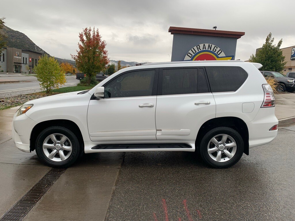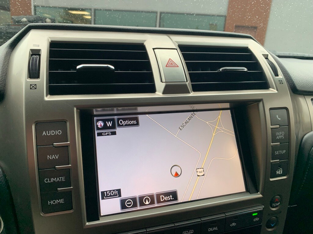 2014 Lexus GX 460 4WD 6-Speed Automatic with Sequential Shift ECT 4.6L V8 DOHC Dual VVT-i 32V 18" x 7.5" 6-Spoke Aluminum Alloy Wheels, 4-Wheel Disc Brakes, ABS brakes, AM/FM radio: SiriusXM, Auto tilt-away steering wheel, Auto-dimming Rear-View mirror, Automatic temperature control, Back-Up Camera, Brake assist, Compass, Delay-off headlights, Electronic Stability Control, Front dual zone A/C, Fully automatic headlights, Garage door transmitter: HomeLink, Heated door mirrors, Illuminated entry, Illuminated running boards, Leather Shift Knob, Lexus Enform w/Safety Connect, Low tire pressure warning, Memory seat, Navigation System, Power door mirrors, Power driver seat, Power moonroof, Power passenger seat, Remote keyless entry, Security system, Steering wheel memory, Steering wheel mounted audio controls, Telescoping steering wheel, Tilt steering wheel, Traction control, Turn signal indicator mirrors.