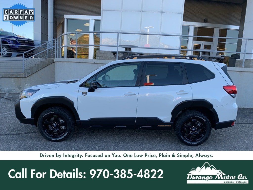 2024 Subaru Forester Wilderness AWD Lineartronic CVT 2.5L 4-Cylinder DOHC 16V Clean Carfax, One Owner, 4-Wheel Disc Brakes, 8" Audio w/harman/kardon & Power Rear Gate, ABS brakes, AM/FM radio: SiriusXM, Auto High-beam Headlights, Automatic temperature control, Electronic Stability Control, Exterior Parking Camera Rear, Four wheel independent suspension, Front dual zone A/C, Front fog lights, Fully automatic headlights, harman/kardon 9-Speaker Audio System, Heated door mirrors, Heated Front Bucket Seats, Low tire pressure warning, Navigation System, Panic alarm, Power driver seat, Power moonroof: Panoramic, Power Rear Gate, Power windows, Radio: Subaru STARLINK 8.0" Multimedia Nav System, Rear window defroster, Rear window wiper, Remote keyless entry, Security system, Speed control, Speed-sensing steering, Split folding rear seat, STARLINK/Apple CarPlay/Android Auto, Steering wheel mounted audio controls, Telescoping steering wheel, Textured StarTex Upholstery, Tilt steering wheel, Traction control, Wheels: 17" x 7.0 J Matte Black Finish Alum-Alloy.