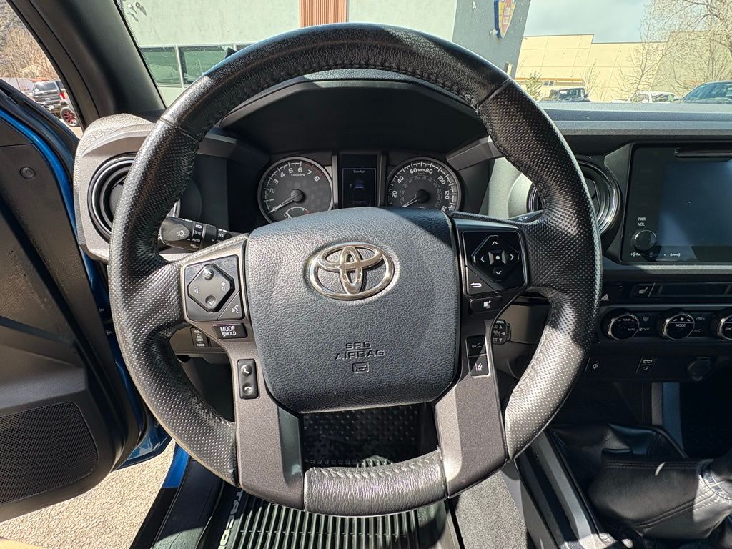 Certified! This 2018 Toyota Tacoma TRD Sport 4x4 is a proven midsize truck built for both performance and everyday versatility. Finished in Blue with TRD Sport graphite interior, its powered by a capable 3.5L V6 engine paired with a 6-speed transmission and part-time 4WD, giving you confidence on highways, back roads, and off the beaten path. The TRD Sport trim adds a sport-tuned suspension, bold styling, and a comfortable, driver-focused cabin with features like Dynamic Radar Cruise Control, Lane Departure Alert, a leather-wrapped steering wheel, and Toyota Safety Sense P. With an EPA-estimated 22 MPG highway, this Tacoma balances capability with efficiency, making it a great fit for work, play, and everything in between.