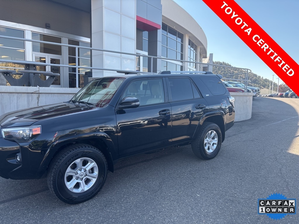 Certified! 2022 Toyota 4Runner SR5 Premium 4WD 5-Speed with ECT 4.0L V6 DOHC 24V Clean Carfax, One Owner, 4WD, 4-Wheel Disc Brakes, 8 Speakers, ABS brakes, AM/FM radio: SiriusXM, Apple CarPlay/Android Auto, Auto High-beam Headlights, Auto-dimming Rear-View mirror, Blind Spot Monitor (BSM), Brake assist, Compass, Electronic Stability Control, Exterior Parking Camera Rear, Front fog lights, Garage Door Opener, Heated Front Bucket Seats, Illuminated entry, Low tire pressure warning, Outside Rear View Mirror, Outside temperature display, Power door mirrors, Power driver seat, Power passenger seat, Power steering, Remote keyless entry, Security system, Speed control, Speed-sensing steering, Split folding rear seat, Steering wheel mounted audio controls, Telescoping steering wheel, Tilt steering wheel, Traction control, Turn signal indicator mirrors, Variably intermittent wipers.