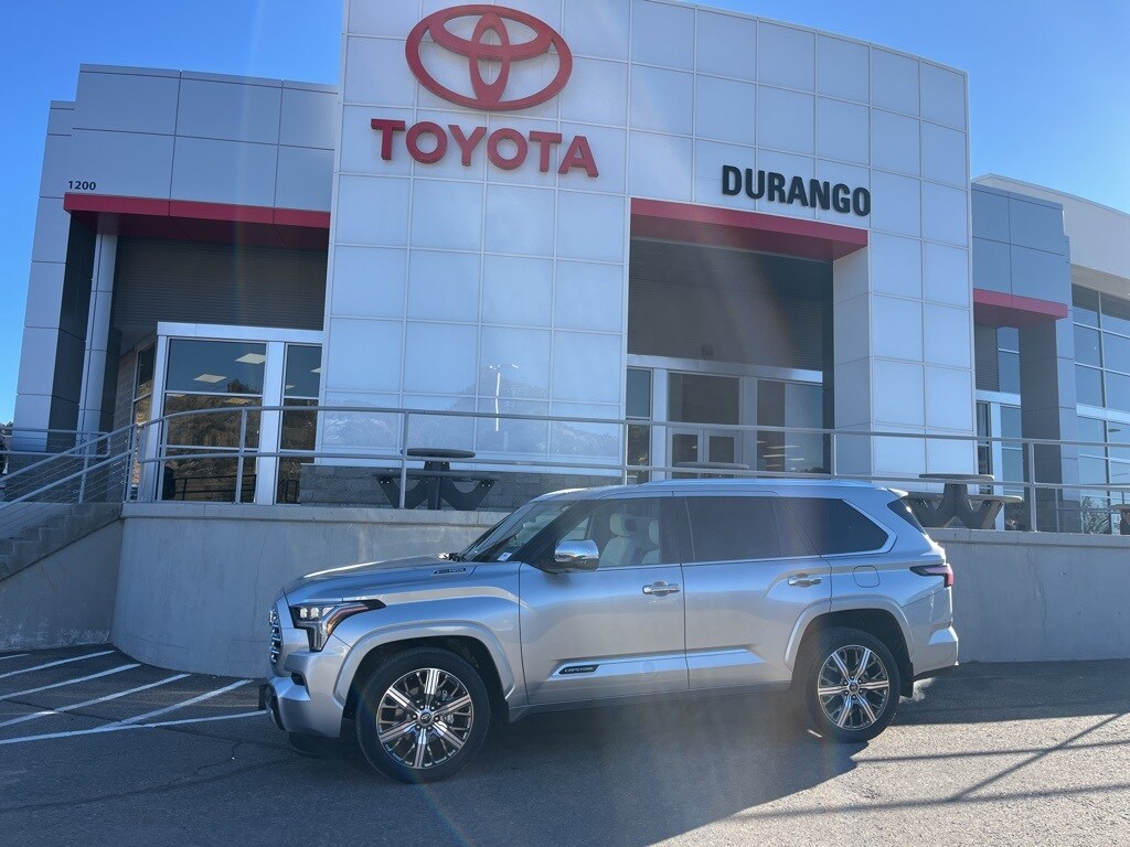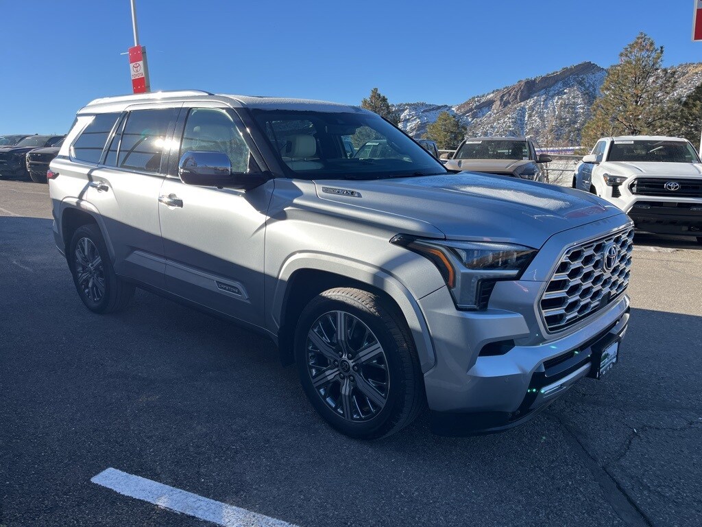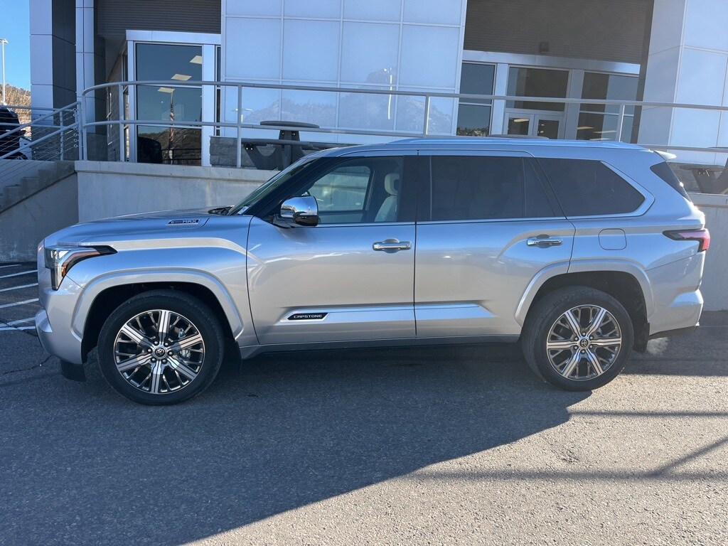Certified! 2023 Toyota Sequoia Capstone 4WD 10-Speed Automatic V6 Hybrid Clean Carfax, One Owner, V6 Hybrid, 10-Speed Automatic, 4WD, ABS brakes, Active Cruise Control, AM/FM radio: SiriusXM, Apple CarPlay/Android Auto, Auto High-beam Headlights, Auto tilt-away steering wheel, Auto-dimming door mirrors, Auto-dimming Rear-View mirror, Automatic Power Extending Running Boards, Automatic temperature control, Brake assist, Capstone, Compass, Delay-off headlights, Electronic Stability Control, Front dual zone A/C, Front fog lights, Headlight cleaning, Heads-Up Display, Heated & Ventilated Front Seats, Heated door mirrors, Heated Power Auto-Dimming Outside Mirrors, Heated rear seats, Heated steering wheel, Illuminated entry, Low tire pressure warning, Memory seat, Navigation System, Outside temperature display, Power door mirrors, Power driver seat, Power Liftgate, Power moonroof, Power passenger seat, Power steering, Premium audio system: JBL, Rain sensing wipers, Rear air conditioning, Reclining 3rd row seat, Remote keyless entry, Security system, Semi-Aniline Leather Seat Trim, Speed control, Speed-sensing steering, Steering wheel mounted audio controls, Telescoping steering wheel, Tilt steering wheel, Traction control, Turn signal indicator mirrors, Ventilated rear seats.