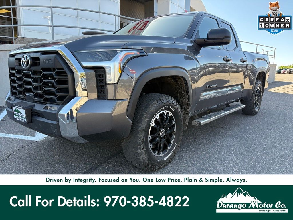 The 2023 Toyota Tundra SR5 4x4 Double Cab is a full-size truck built to deliver strong performance, modern technology, and serious capability for both work and everyday driving. Powered by a 3.5L i-FORCE twin-turbo V6 engine producing 389 horsepower and 479 lb-ft of torque, paired with a 10-speed automatic transmission, it offers impressive towing power and smooth acceleration. Equipped with a part-time 4WD system, multi-link rear suspension, and trailer sway control, this Tundra is ready to handle tough jobs, off-road conditions, and long hauls with confidence. Finished in Magnetic Gray Metallic, it features bold styling and a durable composite bed designed for heavy use. Inside, the Double Cab offers a spacious and functional layout with an 8-inch touchscreen, wireless Apple CarPlay and Android Auto, smart key with push-button start, and practical storage throughout, along with Toyota Safety Sense including pre-collision system, dynamic radar cruise control, lane departure alert, and more for added confidence on every drive.