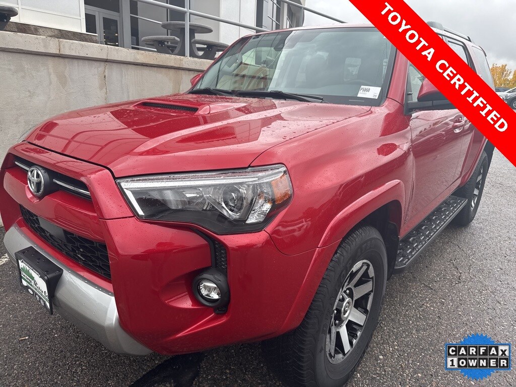Certified! 2024 Toyota 4Runner TRD Off-Road 4WD 5-Speed with ECT 4.0L V6 DOHC 24V Clean Carfax, One Owner, 4WD, Black/Graphite w/Fabric Seat Trim, 4-Wheel Disc Brakes, 8 Speakers, ABS brakes, Air Conditioning, AM/FM radio: SiriusXM, Apple CarPlay/Android Auto, Auto High-beam Headlights, Black Roof Rails, Compass, Electronic Stability Control, Exterior Parking Camera Rear, Front fog lights, Heated door mirrors, Low tire pressure warning, Off Road Package, Panic alarm, Power driver seat, Power windows, Radio: Audio Plus, Rear window defroster, Rear window wiper, Remote keyless entry, Running Boards (TMS), Security system, Speed control, Speed-sensing steering, Split folding rear seat, Steering wheel mounted audio controls, Telescoping steering wheel, Tilt steering wheel, Traction control, Wheels: 17" Unique 7-Spoke Off-Road Alloy.