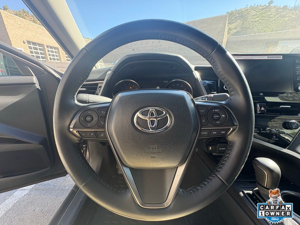 Certified! The 2024 Toyota Camry XSE is a sleek and sporty midsize sedan that blends performance, efficiency, and modern technology into a refined daily driver. Powered by a responsive 2.5L 4-cylinder engine paired with an 8-speed automatic transmission, it delivers a smooth yet engaging driving experience while maintaining impressive fuel economy. The XSE trim stands out with its sport-tuned suspension, bold styling, and 19-inch alloy wheels, giving it a more aggressive and athletic presence on the road. Finished in gray with a black perforated interior, it offers a premium and driver-focused cabin featuring leather-trimmed accents, dual-zone climate control, and advanced technology including a large touchscreen display with navigation, JBL premium audio, and a panoramic glass roof that enhances the open-air feel. With Toyota Safety Sense 2.5+ and features like adaptive cruise control, lane tracing assist, and blind spot monitoring, this Camry delivers a confident balance of performance, comfort, and cutting-edge safety.