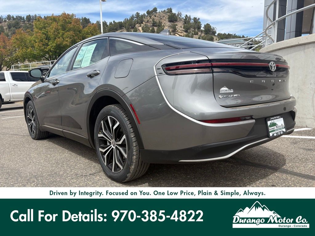 Certified! The 2024 Toyota Crown XLE AWD is a sleek and modern hybrid sedan that delivers exceptional efficiency, advanced technology, and a refined driving experience. Powered by a 2.5L 4-cylinder hybrid system producing 236 combined horsepower paired with an electronically controlled CVT, it offers smooth acceleration and outstanding fuel economy while the electronic on-demand all-wheel drive system adds confidence in all types of road conditions. Finished in Heavy Metal, it features bold styling with 19-inch multi-spoke alloy wheels and signature LED lighting for a distinctive presence. Inside, the cabin is thoughtfully designed with premium comfort and cutting-edge tech, including a 12.3-inch touchscreen with wireless Apple CarPlay and Android Auto, a 12.3-inch digital display, heated and power-adjustable front seats with SofTex trim, wireless charging, and smart key with push-button start, along with Toyota Safety Sense 3.0 including pre-collision system with pedestrian detection, blind spot monitor with rear cross-traffic alert, and backup camera for added confidence on every drive.