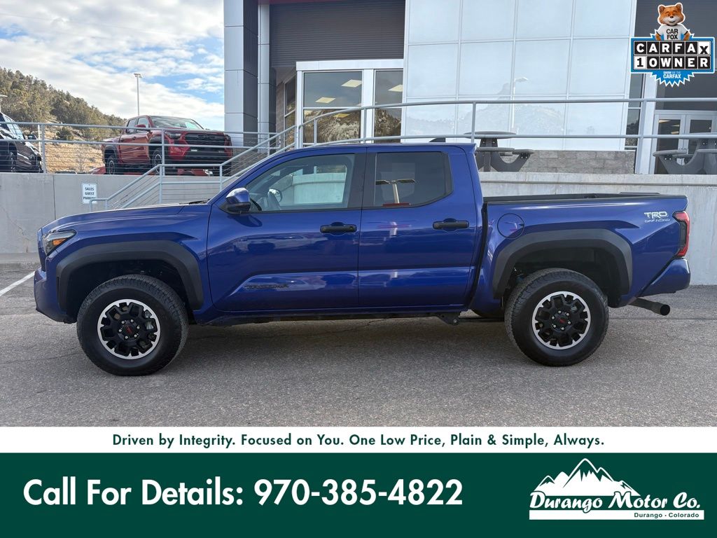 Certified! The 2024 Toyota Tacoma TRD Off-Road is built for drivers who want serious trail capability without giving up everyday comfort. Powered by the turbocharged 2.4L i-FORCE 4-cylinder engine paired with an 8-speed automatic transmission, this Tacoma delivers responsive performance and confident 4x4 capability for backcountry adventures and Colorado winters alike. The TRD Off-Road package adds rugged upgrades designed for uneven terrain, while the bold Blue Crush Metallic exterior and durable cloth interior give it a tough, modern look. With a versatile Double Cab, advanced Toyota Safety Sense features, and proven off-road engineering, this Tacoma is ready for workdays, weekends, and everything in between.