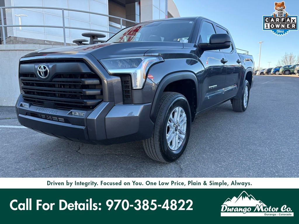 The 2024 Toyota Tundra SR5 is a powerful and refined full-size truck built to handle both tough jobs and everyday driving with ease. Equipped with a 3.4L twin-turbo V6 engine producing around 389 horsepower and paired with a 10-speed automatic transmission, this Tundra delivers strong performance and smooth shifting, along with available 4WD capability and impressive towing strength for work or adventure. Inside, youll find a modern and spacious cabin featuring a touchscreen infotainment system with Apple CarPlay and Android Auto, push-button start, advanced driver-assist features, and a comfortable CrewMax configuration. With fuel efficiency around 18 MPG city / 23 MPG highway, the SR5 trim offers a great balance of power, technology, and value, making it one of the most popular and well-rounded options in the Tundra lineup.