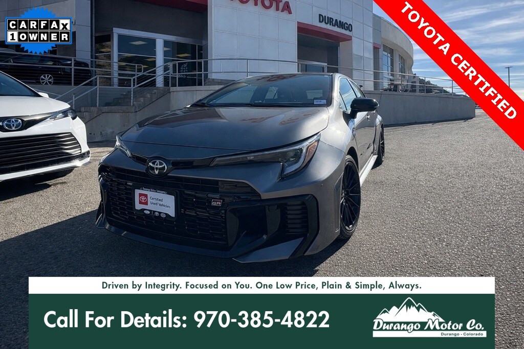 Certified! Experience the exhilarating performance of this 2025 Toyota GR Corolla Premium, now available at Durango Motor Company. With only 7,450 miles on the odometer, this sporty hatchback is ready to deliver a thrilling ride. The GR Corolla combines agile handling with advanced engineering, making it an ideal choice for enthusiasts and everyday drivers alike. This vehicle's striking design and comfortable interior provide both style and practicality. The Premium trim level offers a range of modern features designed to enhance your driving experience. Visit us today in Durango, Colorado, to explore this exceptional GR Corolla and see why it's the perfect fit for your lifestyle.
