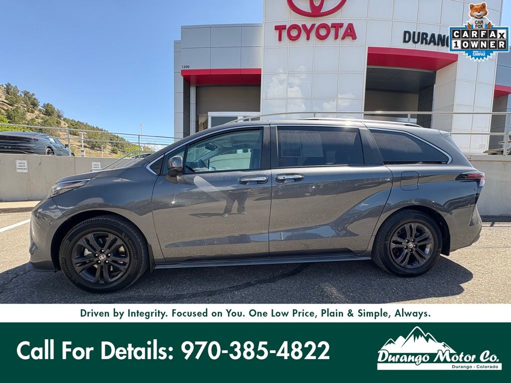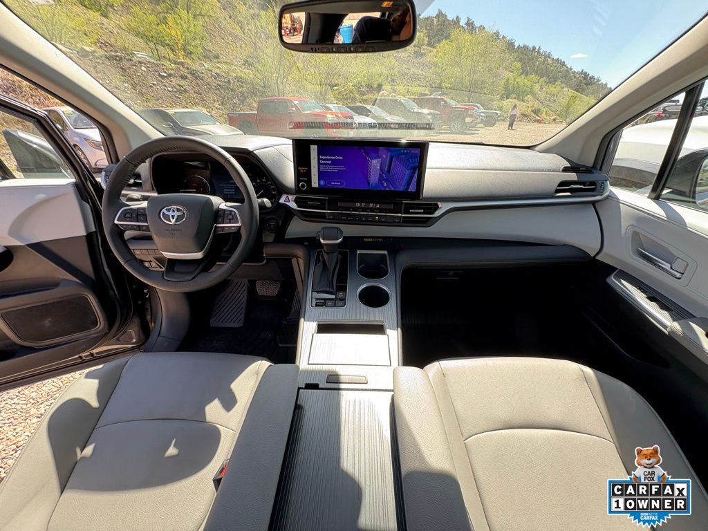 Certified! The 2025 Toyota Sienna XLE AWD 7-Passenger is a versatile and efficient minivan designed to deliver comfort, space, and advanced hybrid performance for modern families. Powered by a 2.5L 4-cylinder hybrid engine producing 245 combined horsepower and paired with an electronically controlled CVT, it offers smooth acceleration and impressive fuel efficiency while the electronic on-demand all-wheel drive system adds confidence in changing road conditions. Finished in Magnetic Gray Metallic, it features a sleek exterior with LED headlights, power sliding doors, a hands-free power liftgate, and a power moonroof for added convenience. Inside, the cabin is spacious and refined with SofTex-trimmed seating, heated front seats, second-row captains chairs with super-long-slide functionality, and a versatile third row for flexible cargo and passenger space. Technology is front and center with a 12.3-inch touchscreen, wireless Apple CarPlay and Android Auto, multiple USB ports, and four-zone climate control, along with Toyota Safety Sense including pre-collision system, blind spot monitor with rear cross-traffic alert, and front and rear parking assist for added confidence on every drive.