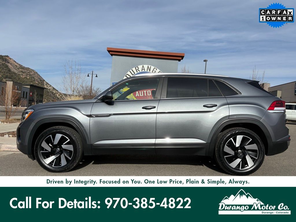 Introducing the 2024 Volkswagen Atlas Cross Sport 2.0T SE w/Technology, now available at Durango Motor Company. With just 34,983 miles on the odometer, this versatile SUV is designed for those who appreciate both style and functionality. The Atlas Cross Sport combines a sporty silhouette with ample interior space, making it an ideal choice for families or adventurers alike. Equipped with advanced technology and safety features, this SUV ensures a connected and secure driving experience. Its turbocharged engine provides a perfect balance of power and efficiency, making it suitable for both city commutes and long highway journeys. Experience the blend of modern design and practicality in the Atlas Cross Sport, ready to elevate your driving experience in beautiful Durango, Colorado.
